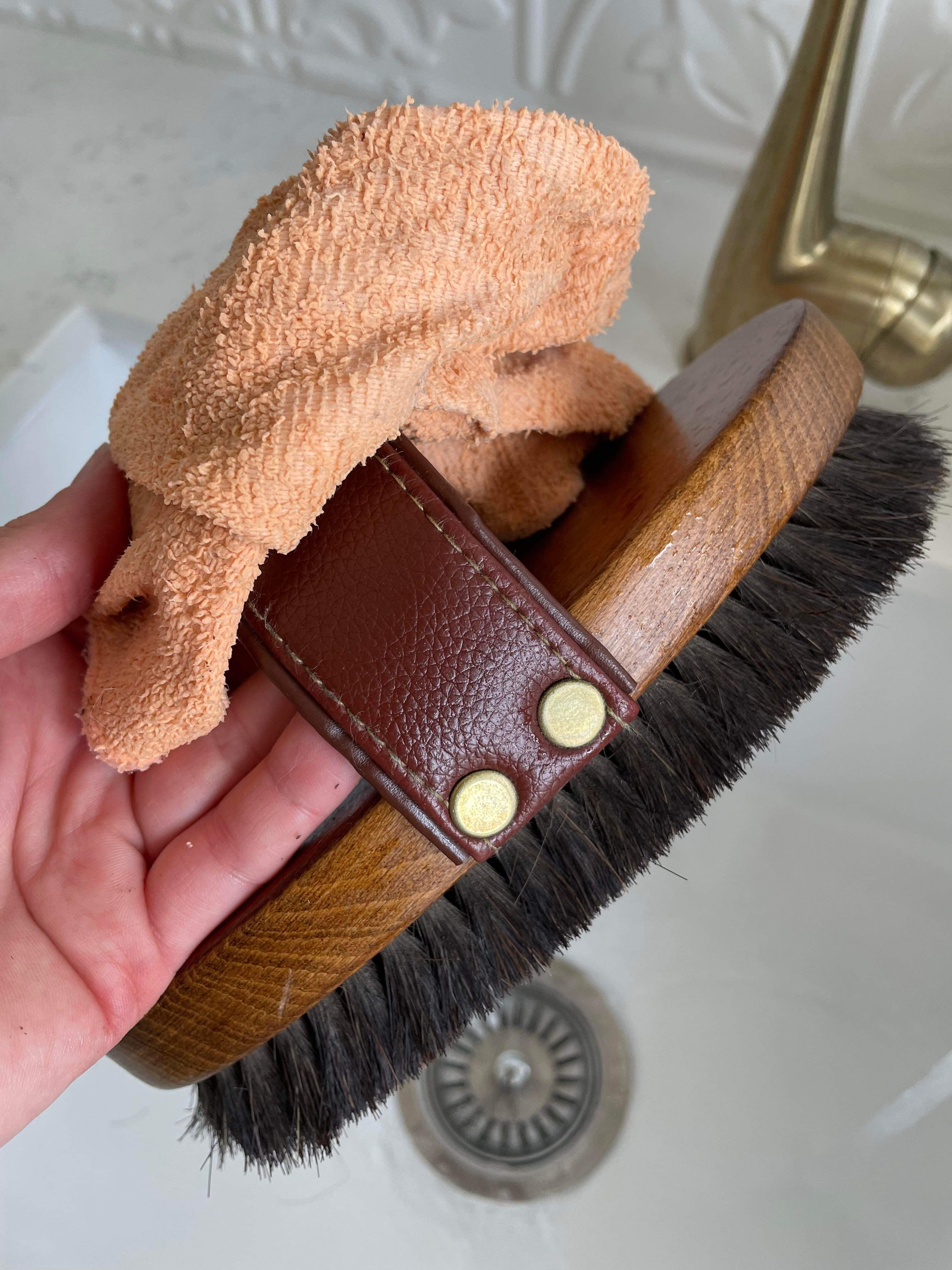 Wipe any excess dirt, dust or grime from brush handle & wood back using a damp cloth.