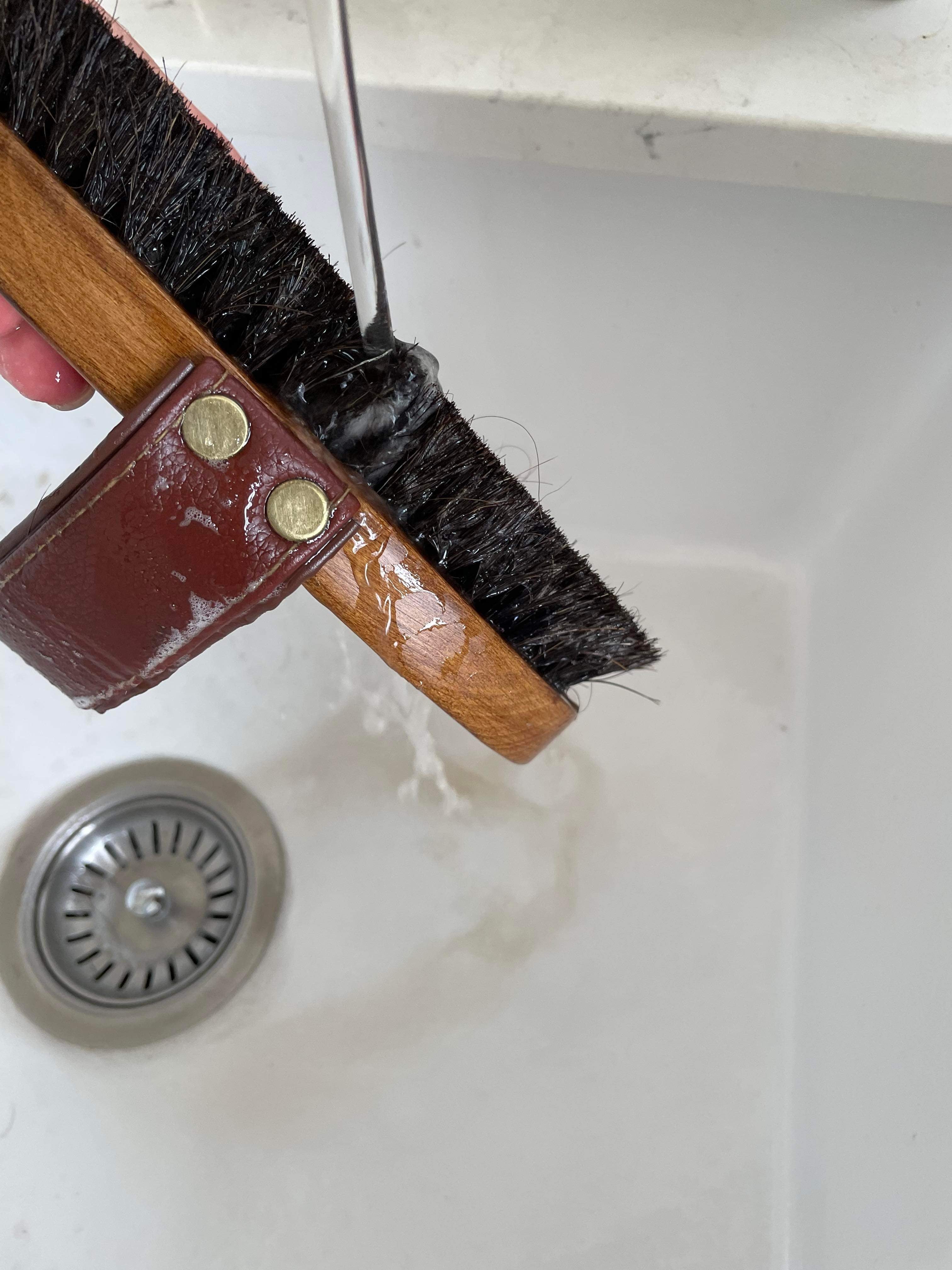 Add a very small amount of silicone free shampoo (like our Natural Shampoo) or wool wash & gently massage into the bristles to remove built up oil & dirt. We recommend a gentle, silicone free shampoo to