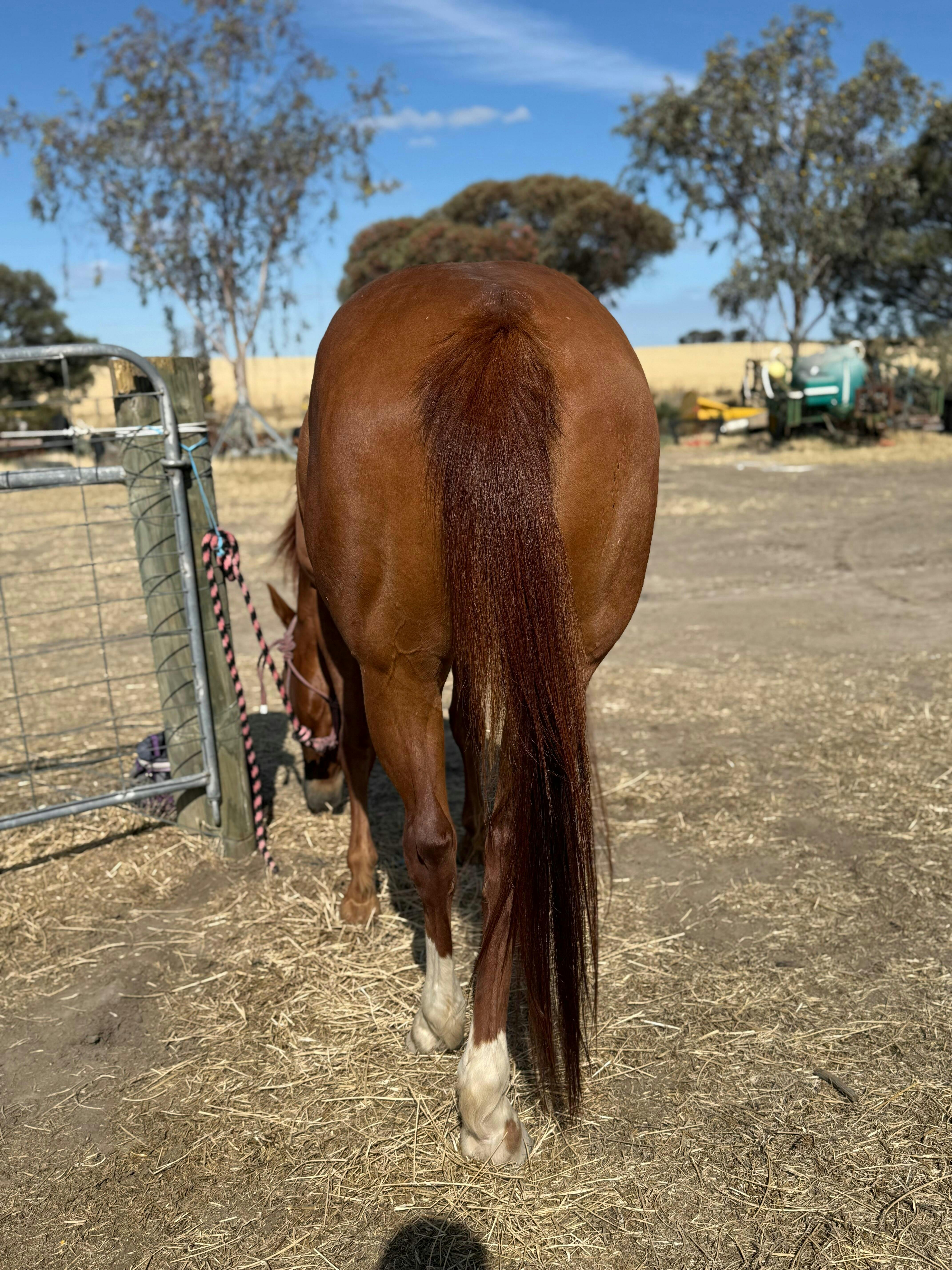 A little goes a long way and it’s great for thicker tails to keep them tangle free. It soaks into the hair without making it greasy or attracting dirt. 5*