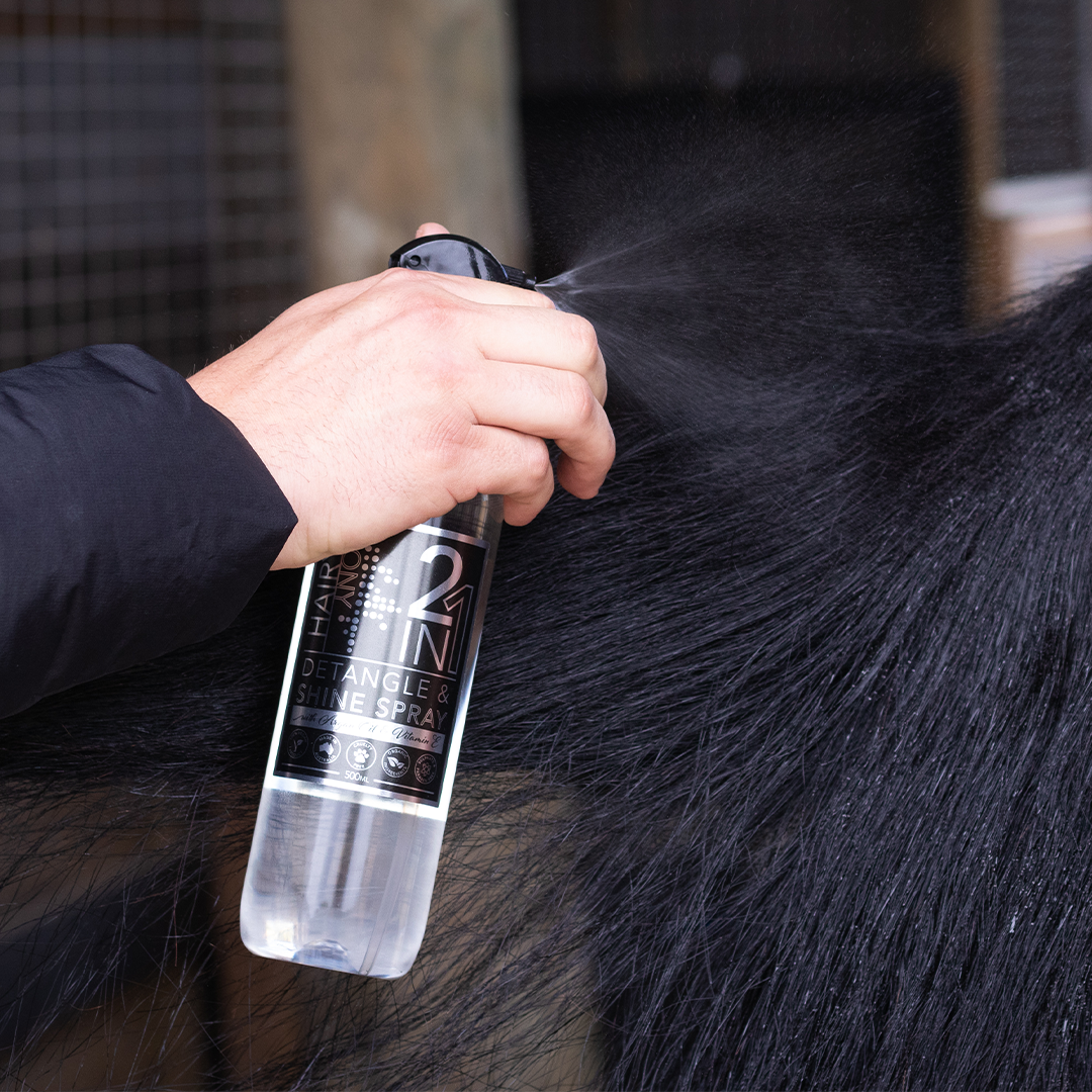 It can also be used for show day shine on clean tails or, after washing in dry tails to prevent knots.