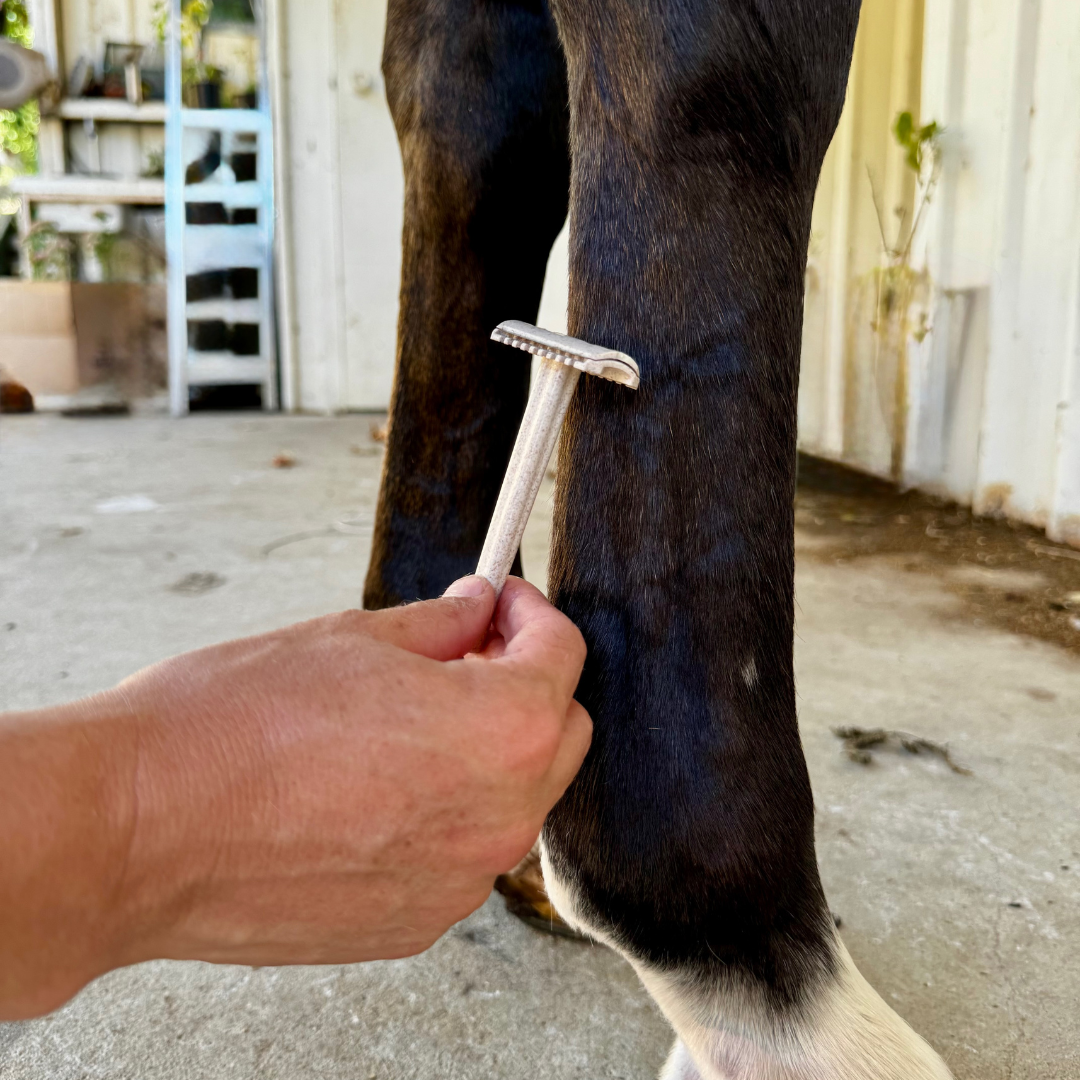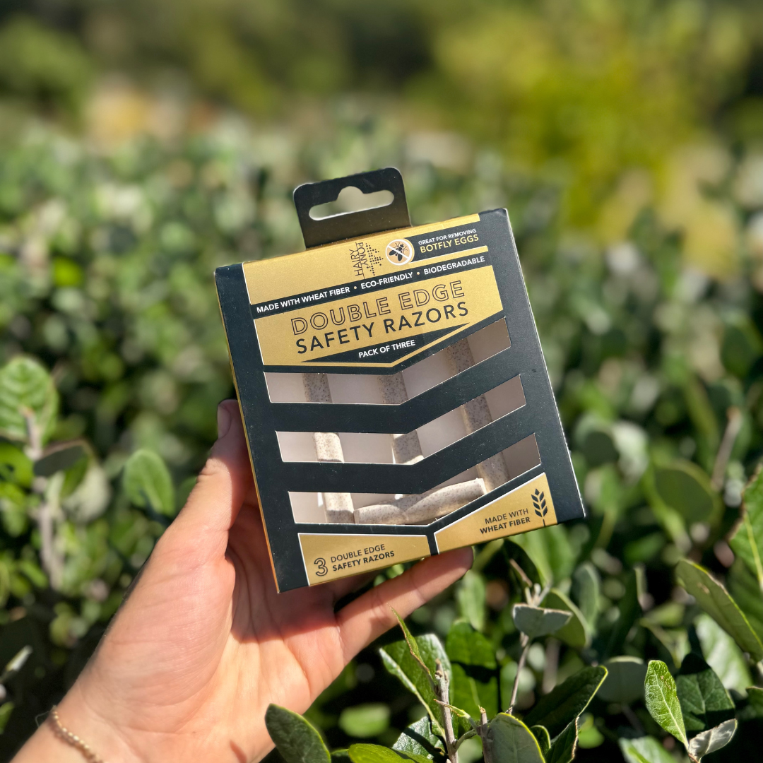 The Hairy Pony Double Edge Safety Razors have been designed with both precision & sustainability in mind. Crafted with a unique blend of cutting-edge technology & eco-friendly materials, our razors are proudly made with wheat fibre - a natural, sustainable by-product of wheat cultivation. Designed specifically for tidying up hair on your horse's jawline, legs & tail, as well as removing botfly eggs, the Hairy Pony Double Edge Safety Razors offer a safe & effective solution for maintaining your horse’s polished appearance. The Hairy Pony Double Edge Safety Razors are available in a pack of three & are complete with blade covers.