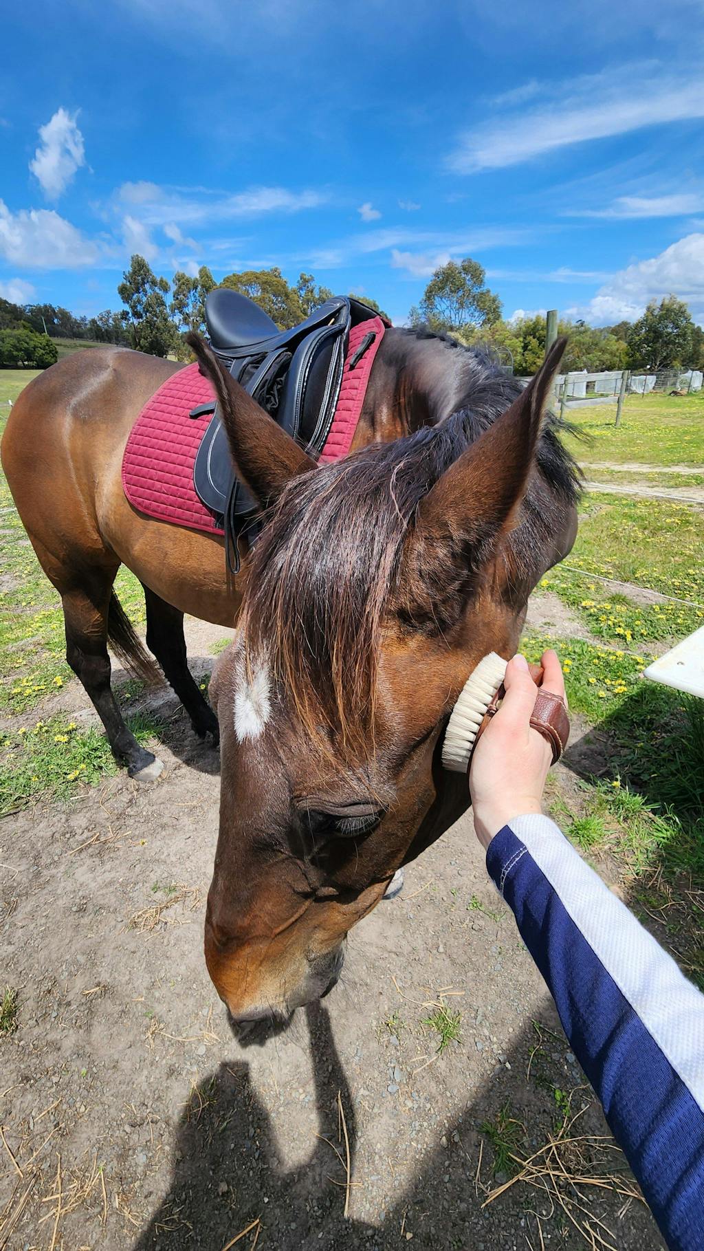 beautiful brush so soft on my horses face they were loving it, even closing their eyes and falling asleep