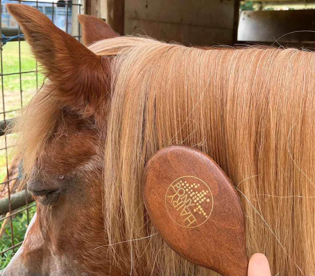 Our HAIRY PONY MANE & TAIL BRUSH is the ultimate brush for mane & tail care. This horse mane and tail brush has smooth metal bristles minimise hair breakage when brushing out stubborn knots. The ergonomic hand-crafted beechwood handle ensures a secure pad & bristles, as well as being comfortable, easy to grip and a beautiful addition to your grooming kit.