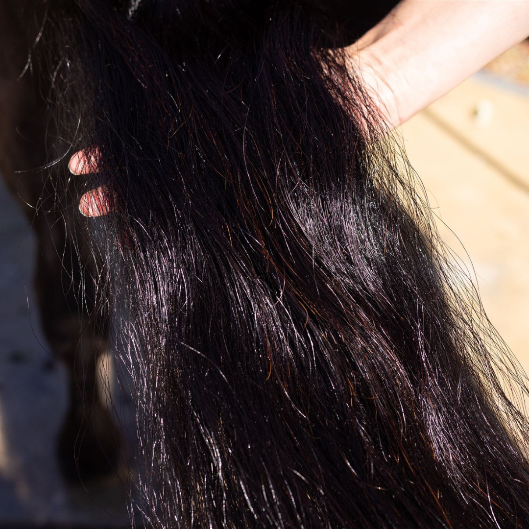 Use the Detangle & Shine Spray before brushing to help reduce breakage and leave a beautiful, glossy finish. The Silky Serum can be applied as needed to add extra moisture and shine, while the Tail Trimming Scissors allow you to maintain a tidy, even tail for a polished look year-round.