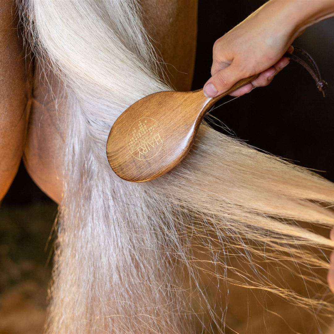 Love the Hairy Pony Products for my new horse Bushy by name and nature, couldnt use a normal mane & tail comb on her at all! And she has the thickest, longest forelock, mane and tail.'