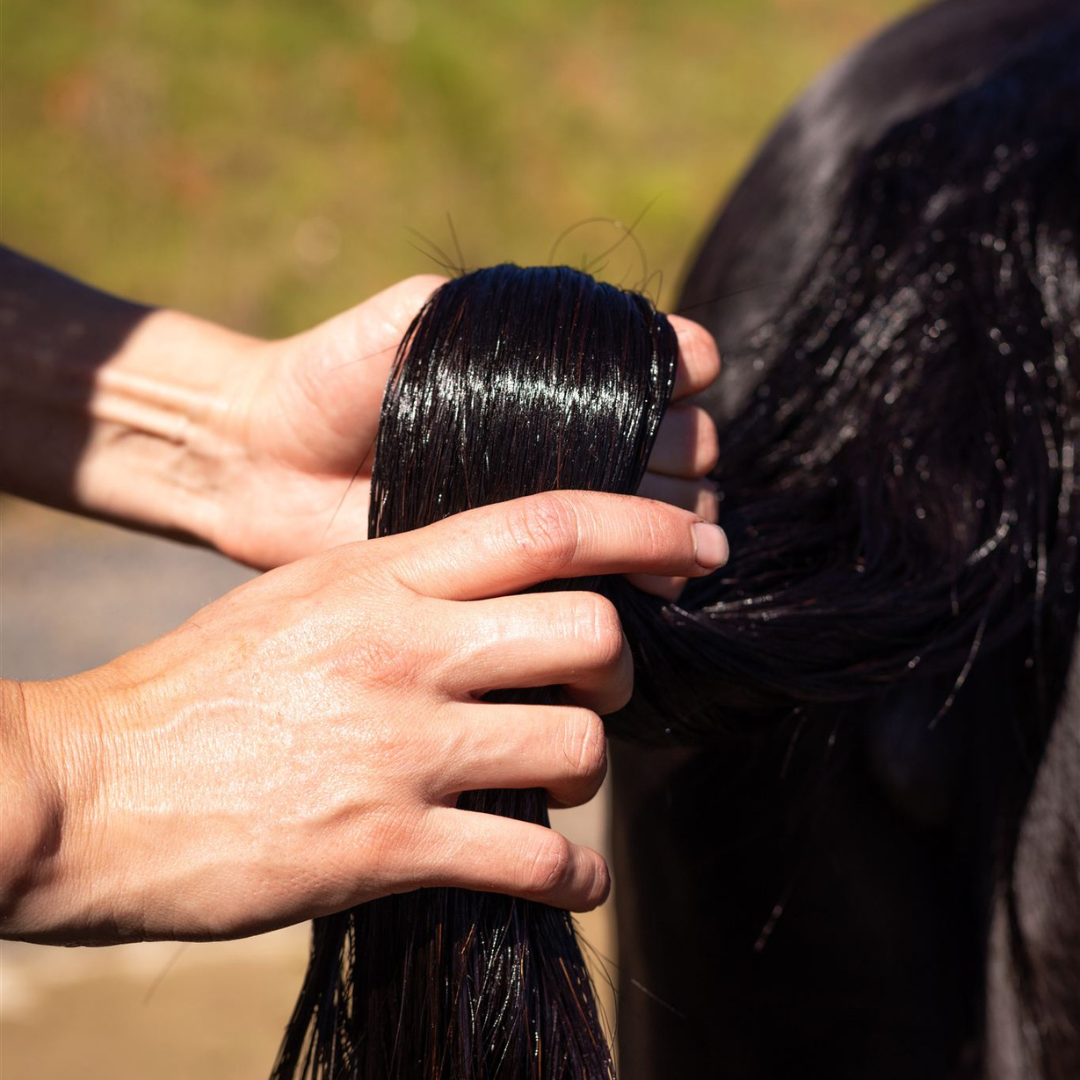 Between washes, keep your horse’s tail soft, shiny and manageable by incorporating the Detangle & Shine Spray, Silky Serum and Tail Trimming Scissors into your regular grooming routine.
