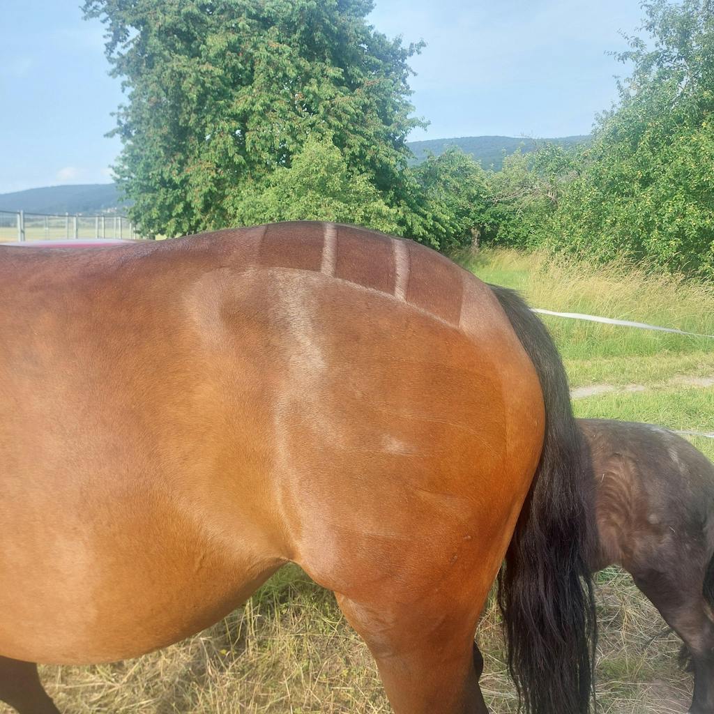 Use your HAIRY PONY QUARTER MARK HORSE BRUSH to create crisp, clean quarter marks, from checkers to sharks teeth. Spray generously with HAIRY PONY SHIMMER SPRAY for a show-stopping, high-impact finish.